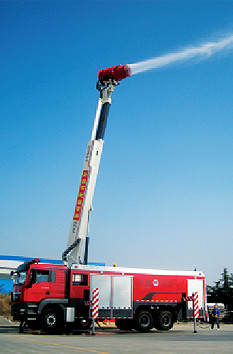 大功率對(duì)旋風(fēng)機(jī)舉高噴射消防車,又稱“小旋風(fēng)”可攜帶“超細(xì)水霧-超細(xì)干粉滅火劑”對(duì)建筑物火災(zāi)進(jìn)行縱深“全淹沒”噴射。