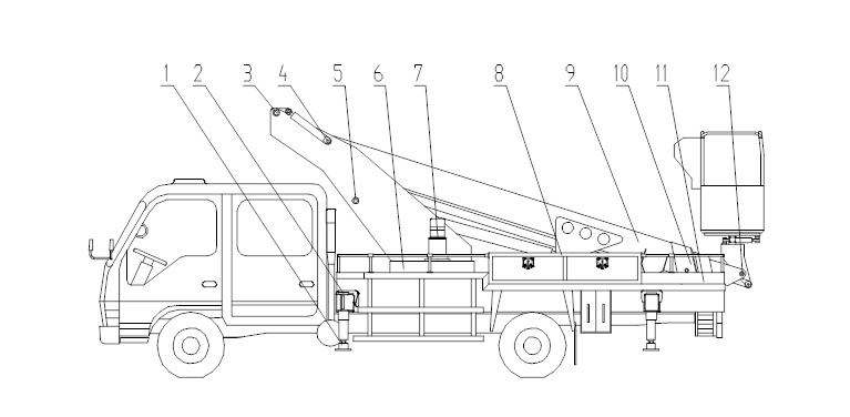 11、作業(yè)時增加迎風面積會導致車輛有傾翻的危險,因此工作時不得在平臺上設置板牌,插旗幟等。